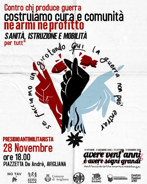 notav.info - Monday, November 17, 2025In occasione dello sciopero generale ci troviamo davanti alla stazione di Avigliana per riflettere insieme su cosa implica finanziare la guerra e come vorremmo che venissero investiti i soldi pubblici! […]