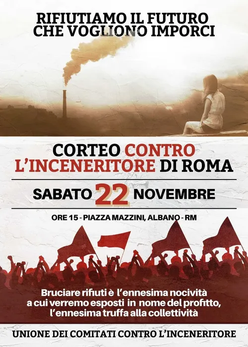 Radio Onda Rossa - Tuesday, November 18, 2025Lanciamo il corteo contro l'inceneritore di Roma del prossimo Sabato 22 Novembre ad Albano Laziale in Piazza Mazzini alle ore 15:00 con l'aiuto di due corrispondenze: la prima con un compagno dell'Unione dei Comitati contro l'Inceneritore, per parlare degli ultimi aggiornamenti sul cantiere e dell'organizzazione della manifestazione; la seconda con un compagno del comitato per la difesa dei boschi dei castelli per discutere dell'impatto che l'inceneritore avrà sulle falde acquifere dei Castelli Romani e su tutta le rete idrica del Lazio.