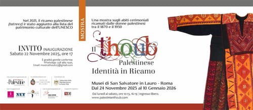 Roma, 22 novembre. Inaugurazione Mostra “Il Thoub Palestinese”