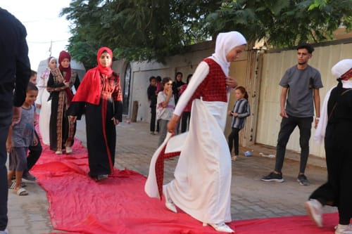 Gaza. Palestinesi si avviano a presentare il festival (foto da Ezzeldeen Shalah)Non potremo che ricordare questo evento come un’ “utopia realizzata”, tra il 26 e il 31 ottobre 2025, a Deir el Balah nella striscia di Gaza.