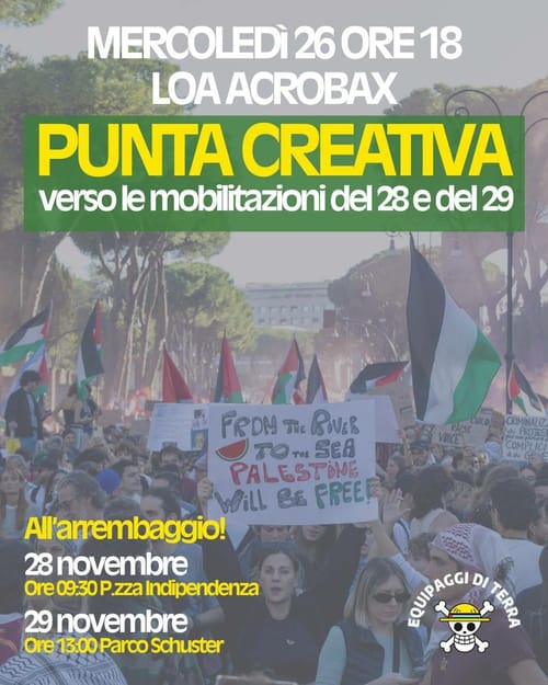 Gancio de Roma - Tuesday, November 25, 2025Punta creativa verso le mobilitazioni del 28 e 29 novembre