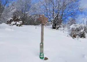 A causa della neve alta sul Sentiero 18 che impediva la prosecuzione della Camminata, i partecipanti hanno deciso di fermarsi al bivio tra il Muraglione e la Colla.