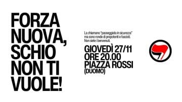 Global Project - Wednesday, November 26, 2025Giovedì 27 novembre Forza Nuova tenterà di sfilare per le vie di Schio con quella che definisce una “passeggiata per la sicurezza”. Si tratta dell’ennesima provocazione di un gruppo neofascista ormai ai margini del dibattito pubblico. La proposta ha sollevato le proteste di diverse realtà del territorio, che ribadiscono come a Schio non abbiano legittimità ronde, intimidazioni e razzismi. Di seguito il comunicato.La chiamano “passeggiata in sicurezza” ma sono ronde di prepotenti e fascisti.Non siete i benvenuti. Forza Nuova, Schio non ti vuole! Giovedì 27/11 - ore 20.00 - piazza Rossi (DUOMO)Forza Nuova annuncia una ronda a Schio.Apprendiamo da un articolo di Alto Vicentino Online che giovedì 27 novembre Forza Nuova intende effettuare una ronda per la sicurezza nel centro di Schio. Forza Nuova è un gruppo neofascista, fondato da esponenti legati negli anni ’70 a gruppi eversivi e stragisti come Terza Posizione e NAR.Si ispira dichiaratamente al ventennio fascista e ...
