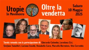 Nell’ambito del Simposio Internazionale del Centro Mondiale di Studi Umanista dal titolo Utopie in movimento si svolgerà il 10 maggio 2025 al Parco di Studi e Riflessione di Attigliano (Terni) una giornata interamente dedicata al tema Oltre la vendetta, con la partecipazione di Gherardo Colombo, Luciano Eusebi, Stefano Tomelleri, Marcello Bortolato, Annabella Coiro, Loredana Cici e Vito Correddu.