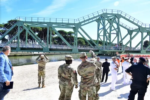 Il raccordo ferroviario, del cui potenziamento abbiamo detto, è infatti integrato con il porto fluviale sul Canale dei Navicelli, costruito nel 1980, poi caduto in disuso e recentemente sottoposto a lavori di potenziamento sotto la guida dell’839th Transportation battalion dell’US Army Military Surface Deployment and Distribution Command (SDDC), per un valore di 42 milioni di $ complessivi. I lavori, cominciati nel 2018, e durati oltre tre anni, hanno interessato soprattutto il ripristino della banchina (prima in ghiaia, ora soletta di calcestruzzo) prolungata a 152 m, una gru da 150 tonnellate, un ponte mobile ferroviario costruito poco a valle del ponte mobile stradale sulla Via Livornese, e una nuova linea ferroviaria verso Livorno con rafforzamento della testa dei binari. Alla fine dell’intervento lo scalo ferroviario di Tombolo – da anni abbandonato per il traffico passeggeri – potrà ospitare 150 vagoni. Lo stesso Canale dei Navicelli è stato potenziato con lavori di dragaggio e ripalancolatura per aumentarne la portata, commissionati da NSPA (NATO Support and Procurement Agency) alla Port Authority Pisa Srl (100% Comune di Pisa). Il collaudo navale è stato effettuato a fine ottobre 2024, con il passaggio della nave Dolphin-E, una portacontainer da 79 m, bandiera di Palau.