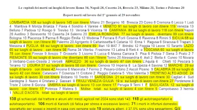 Report morti sui Luoghi di Lavoro(senza itinere) dall'inizio dell'anno al 29 novembre