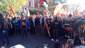 L’imponente corteo non ha tradito le attese, con la partecipazione di tante famiglie con bambini e tantissimi giovani e giovanissimi italiani da generazioni e di altri originari di innumerevoli Paesi, a dimostrazione che anche a Roma è il mondo intero a opporsi al genocidio e ai governi occidentali complici, ma anche alla finanziaria fatta di riarmo, di tagli allo stato sociale e di politiche guerrafondaie purtroppo diffuse in tutta l’Europa. Politiche che stanno apertamente sabotando ogni possibile accordo di pace in Ucraina e ci stanno irresponsabilmente trascinando in una spaventosa guerra mondiale.