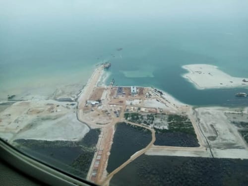 Sito di costruzione del progetto Mozambique LNG. foto JA!Lo scorso novembre, l’European Center for Constitutional and Human Rights (ECCHR), una delle più importanti Ong europee per la difesa dei diritti umani, ha presentato in Francia una denuncia penale contro TotalEnergies per complicità in crimini di guerra, tortura e sparizioni forzate.