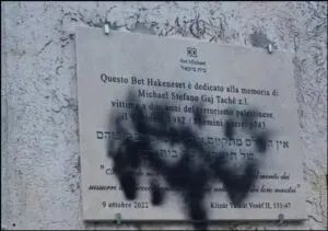 Pressenza - Tuesday, December 2, 2025Il Comitato Monteverde per la Pace esprime massima solidarietà alla comunità ebraica romana, offesa dall’atto vandalico compiuto nel cuore della notte tra domenica e lunedì 1° dicembre da ignoti incappucciati che hanno sfregiato la targa in ricordo del piccolo Stefano Gaj Tachè, vittima dell’attentato dell’82 al Tempio maggiore di Roma, posta all’ingresso della sinagoga del quartiere Monteverde a Roma.