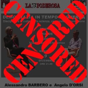 Com’è noto, il Professor Angelo D’Orsi – in seguito a pressioni politiche – non aveva potuto tenere la conferenza contro la russofobia al Polo del ‘900 un mese fa e quindi l’iniziativa venne riorganizzata presso il circolo ARCI La poderosa, con una grande partecipazione popolare. Oggi apprendiamo che il Teatro Grande Valdocco, che era stato affittato al Circolo ARCI della Poderosa per tenervi martedi 9 dicembre, una Conferenza dal titolo “Democrazia in tempo di guerra” a cui avrebbero partecipato Alessandro Barbero e Angelo D’Orsi, non è più disponibile.