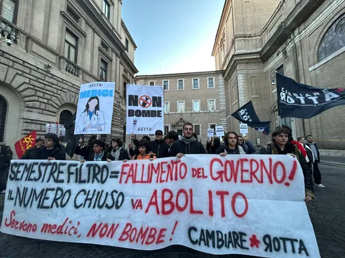 Studenti manifestano contro il numero chiuso mascherato a Medicina