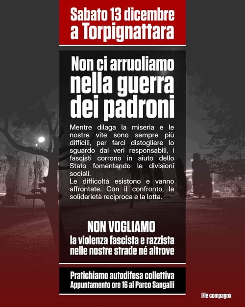 Mentre dilaga la miseria e le nostre vite sono sempre più difficili, per farci distogliere lo sguardo dai veri responsabili, i fascisti corrono in aiuto dello Stato fomentando le divisioni sociali.
