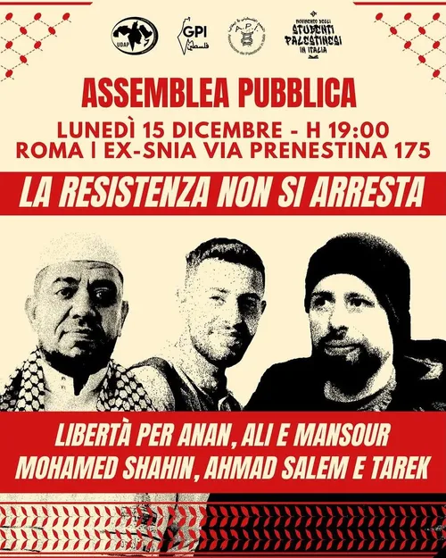 Gancio de Roma - Monday, December 15, 2025La Resistenza non si arresta - Assemblea Pubblica