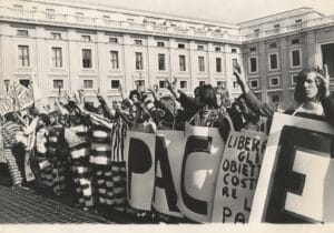 Un altro partecipante al convegno, Antonio Mazzoni, ci ha inviato successivamente una sua sintetica riflessione sui temi dibattuti, che pubblichiamo ritenendola anch’essa interessante. Nella foto manifestazione a Roma nel 1971 per il riconoscimento della obiezione alla leva obligatoria