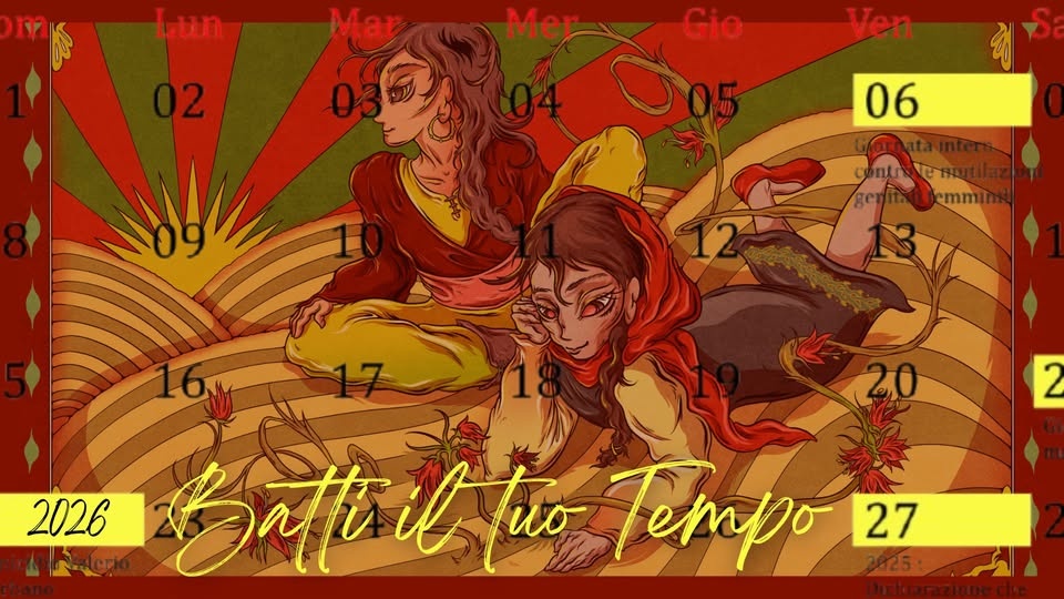 Illustrazione e Mostra delle tavole del calendario realizzate da: Alex Di Viesti, Croma, Stefania Spanò (Anarkikka), Gianluca Costantini, Militanza Grafica, Zehra Doğan, Furetty Cattivi, Azetagatto, Claiso, Giulia Rosa (Grrraffiante), Chiara Zizoli, Giulia Buratti, Lela(…) .
