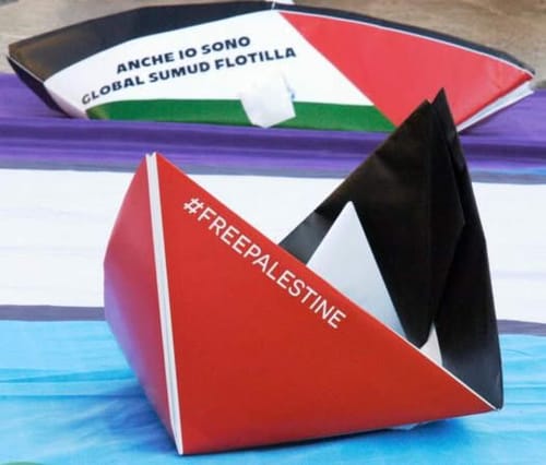 Per fare ciò, è stata necessaria una notevole forza d’animo da parte dei militanti e una disponibilità al sacrificio personale di grande rilievo. Pensiamo solo al fatto che la marina israeliana ha abbordato le barche di notte, e in qualsiasi momento qualcuno poteva cadere in mare. Inoltre si sono verificati attacchi incendiari alle barche, già quando erano alla fonda, a opera di droni sconosciuti il cui mandante non è difficile immaginare (lo ha amesso perfino Tajani, a caldo, con una maldestra excusatio non petita).