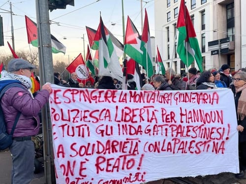 Ma tutto questo sarebbe incredibile se questo atto repressivo e codardo non si collocasse all’interno del clima globale di repressione della solidarietà per il popolo palestinese e la sua Resistenza. Una solidarietà criminalizzata a livello europeo, con i governi di diversi paesi (tra gli altri, UK, Germania, Francia) attenti e solerti nel colpire ormai ogni manifestazione di solidarietà e complessivamente un movimento, realmente globale, che non arretra e che anzi rilancia con la propria azione politica le istanze di liberazione e autodeterminazione che giungono da Gaza e dalla Cisgiordania occupate.