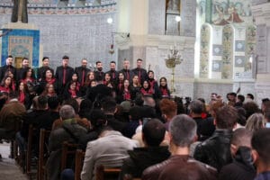 Il momento culminante dello spettacolo è arrivato con una sorpresa: i membri della Chorale Nagham si sono diretti al centro della cattedrale, tra i banchi degli spettatori, per l’esecuzione di “Oh, Holy Night” (O Santa Notte), il tradizionale canto natalizio. Un brano che non figurava nel programma distribuito all’inizio della serata, ma che ha trasformato la chiesa in un luogo di comunione profonda tra persone di diverse provenienze e fedi.