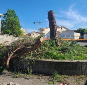 Ancora una volta un pino su suolo pubblico, e, ancora una volta, un taglio effettuato, come ormai è prassi, senza alcuna perizia ad accertare la sicurezza fitostatica del soggetto arboreo, ma esclusivamente per le scelte architettoniche del progetto milionario che vede la ‘riqualificazione’ del piazzale Karl Marx. Sulle tavole di progetto, al posto di quel pino, si è pensato bene di collocare un’aiuola, quando i nuovi piani progettuali dovrebbero, in un’ottica lungimirante, considerare le alberate preesistenti e adottare soluzioni che le conservino.