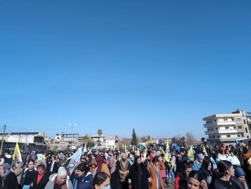 Come raccontava la compagna nella corrispondenza, oggi, 7 gennaio, in moltissime città dell’Amministrazione Democratica, si sono svolti cortei in solidarietà alla popolazione che resiste a Sheikh Maqsoud, e per chiedere l’immediata fine di questi attacchi, che stanno continuando per mano principalmente delle milizie proxy dello Stato Turco e di gruppi armati mercenari legati al governo di transizione. Il numero dei feriti è arrivato a 52 ed è in continuo aumento.