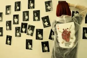 Chi ha partecipato sa che non si è trattato semplicemente di “posare”. L’esperienza ha toccato corde profonde, intime. Si entra in un luogo silenzioso. Si attende. Poi si viene guidate a terra, in un sacco scuro, occhi chiusi, mani che stringono un foglio con una frase e due date: la propria data di nascita e quella della morte di una vittima reale. Il corpo vivo diventa simbolo, diventa grido, diventa assenza. E quel momento breve ma denso diventa parte di un’opera più grande: un collage di fotografie stampate in tempo reale, che insieme formano una parete di volti e nomi, di carne e memoria.