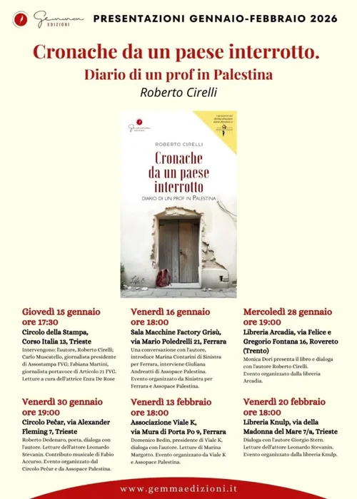Presentazione in varie città del libro “Cronache da un paese interrotto, diario di un prof. in Palestina” di Roberto Cirelli