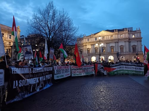 Contropiano - Saturday, January 17, 2026Oggi pomeriggio ancora in un sabato a Milano si è scesi ancora una volta in piazza al fianco dei compagni palestinesi arrestati in Italia e della resistenza palestinese. Il corteo si è concluso in Piazza della Scala, ribattezzata da mesi Piazza Gaza. Una manifestazione contro la montatura giudiziaria contro Mohammed […]