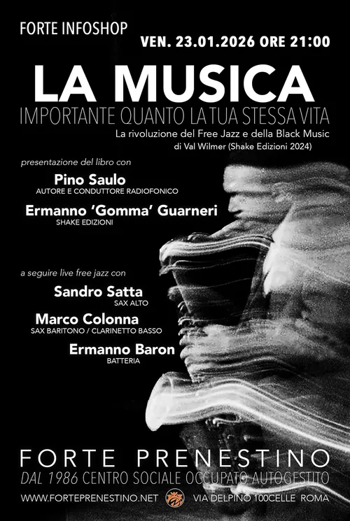[2026-01-23] presentazione libro & live free jazz: "LA MUSICA importante quanto la tua stessa vita" @ CSOA Forte Prenestino