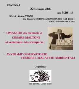di Vito Totire (*). Nasce un osservatorio, appuntamento a Ravenna il 22 gennaio. AL MOMENTO E’ EMERSA SOLO LA PUNTA DELL’ICEBERG … RISPETTO AGLI 8-9.000 TUMORI PROFESSIONALI ALL’ANNO STIMATI DAGLI EPIDEMIOLOGI ALL’INAIL NE VENGONO SEGNALATI 1900 DEI QUALI SOLO LA META’ “RICONOSCIUTI” grazie a un metodo di lavoro semplice: fare la fotocopia acritica di quello che sostiene il datore di