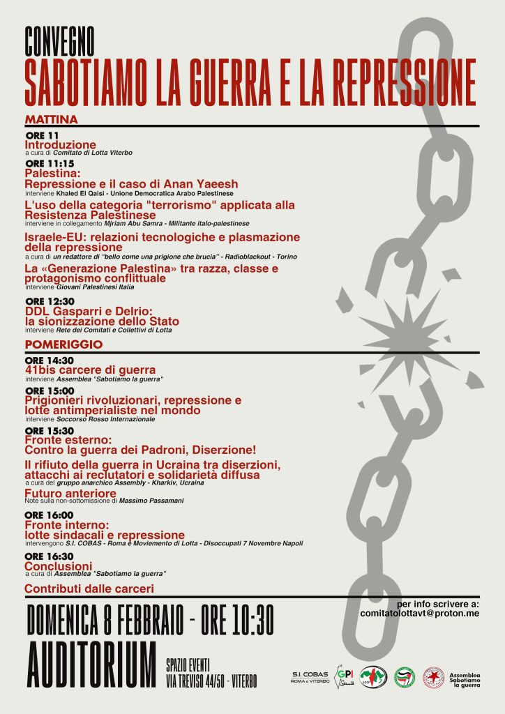 Viterbo, 7 e 8 febbraio: Sabotiamo la guerra e la repressione! Corteo e convegno