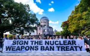 Il 22 gennaio 2021 entrava in vigore il TPNW, primo accordo internazionale che mette esplicitamente al bando le armi nucleari, vietandone sviluppo, sperimentazione, produzione, stoccaggio, uso e minaccia di uso. Un passaggio storico, reso possibile dalla mobilitazione della società civile globale e dalle testimonianze degli hibakusha, i sopravvissuti di Hiroshima e Nagasaki, che per decenni hanno denunciato l’impatto umano e intergenerazionale delle armi nucleari.