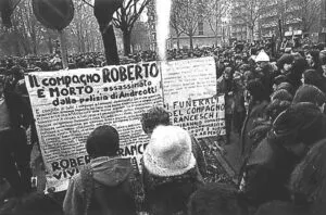 La polizia spara contro i militanti di estrema sinistra per uccidere. [In gennaio viene assassinato lo studente Roberto Franceschi, aderente al Movimento Studentesco della Statale in uno scontro avvenuto dopo un’assemblea all’università Bocconi la sera del 23/1/1978, Franceschi morì il 30 gennaio dopo 7 giorni di agonia].