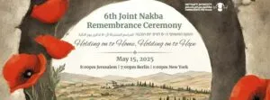 Inoltre qui : https://www.pressenza.com/it/2025/05/15-maggio-nakba-day-tantissime-le-manifestazioni-per-commemorare-la-catastrofe-che-non-e-mai-finita/ abbiamo pubblicato un’intervista alla co-direttrice dei ‘Combatants’ Rana Salman, a introduzione della Cerimonia.
