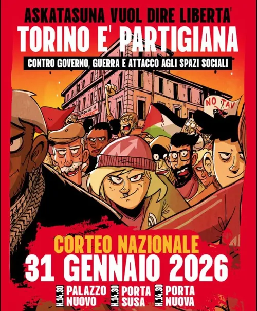 Osservatorio Repressione - Friday, January 30, 2026Torino scende in piazza il 31 gennaio, mentre il governo stringe sugli spazi sociali Sabato 31 gennaio Torino sarà attraversata da una manifestazione nazionale che va ben oltre la difesa …