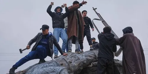 L’abbattimento della statua di Ş. Rojbin Arab a Raqqa da parte di miliziani jihadisti