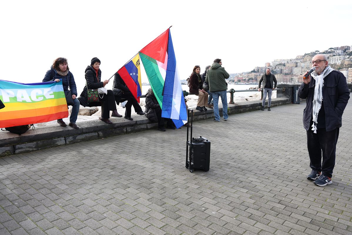 Presidio nonviolento a Napoli contro l’ICE: Padre Zanotelli parla davanti al Consolato USA