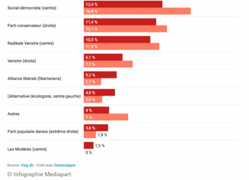 «Con questa nuova coalizione, Mette Frederiksen si è convertita a una politica sociale più neoliberista, ponendo l’accento sull’offerta di lavoro», riassume Frederik Klaaborg Kjøller. Questo cambiamento ha portato a un abbandono degli elettori di sinistra, che si sono rifugiati nell’EL o nell’SF, e, più in generale, a una forte impopolarità dei socialdemocratici.
