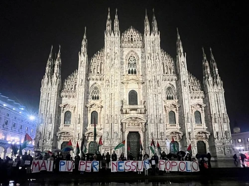 MILANO: IL PRESIDIO PERMANENTE DI PIAZZA DUOMO VERSO L’OTTAVO MESE DI MOBILITAZIONE PER GAZA E LA PALESTINA