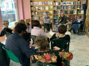È Luca, il padrone di casa, che introduce la presentazione dei libri di Pressenza lasciando a Toni Casano il compito di condurre la chiacchierata sui testi insieme a Nicoletta Salvi curatrice di Carcere ai Ribell3 e a Daniela Musumeci curatrice di Crepuscolo dell’ordine imperiale e sfide per la pace, Annale 2024 dei migliori articoli usciti su Pressenza.