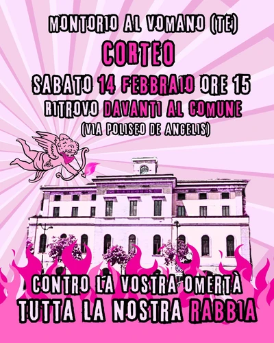 "Quest'anno l'8 marzo arriva prima, arriva il 14 febbraio, il giorno di San Valentino, con un corteo organizzato dal basso a Montorio al Vomano. Scendiamo in piazza perché siamo stufə del clima di silenzio e di paura che si è generato con la giunta guidata da Altitonante e i suoi compari. Lo facciamo per dare voce a chi ha subito la violenza da parte del ginecologo e vicesindaco Ciarrocchi. Una violenza di cui moltə sentono parlare solo adesso che la notizia ha straripato, ma che era già emersa 6 anni fa quando la vittima era stata costretta a subire vittimizzazione secondaria da parte della comunità".
