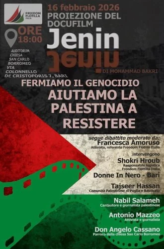 #stopthegenocideingaza🇵🇸 #Bari, lunedì 16 febbraio, ore 18, Auditorium della Chiesa di San Carlo Borromeo.