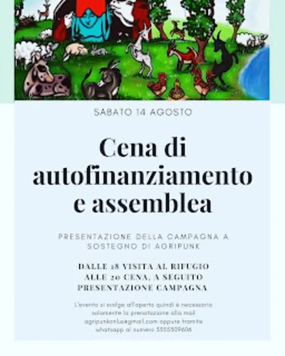 Necessaria prenotazione alla mail agripunkonlus@gmail.com oppure tramite whatsapp al numero 3355309606