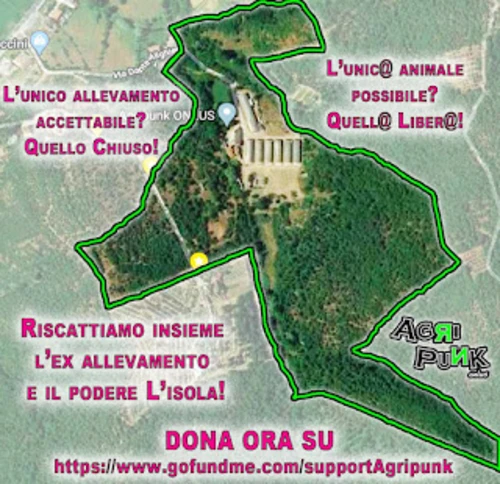 La raccolta fondi per l'affitto a riscatto si evolve e si trasforma nella raccolta fondi definitiva per l'acquisto del podere L'isola dove sorge il rifugio Agripunk e per riscattare definitivamente l'ex allevamento che abbiamo fatto chiudere e che abbiamo, ormai da 6 anni, trasformato in rifugio antispecista e spazio sociale!