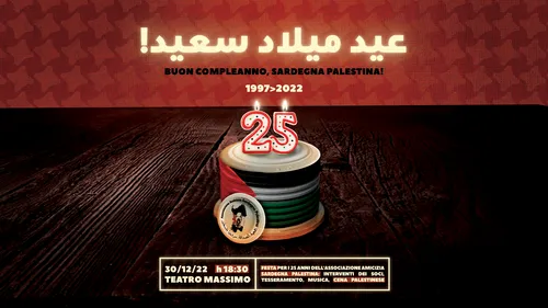 Associazione Amicizia Sardegna-Palestina - Monday, December 19, 2022L’associazione culturale Amicizia Sardegna Palestina compie 25 anni e vale la pena soffermarsi a riflettere sul lavoro che abbiamo svolto nel corso di questo quarto di secolo. Fondata il 20 dicembre 1997 a Dolianova, in Sardegna, l’associazione Amicizia Sardegna Palestina è stata ed è attiva in diverse attività culturali e politiche, sia nell’isola che fuori. […]