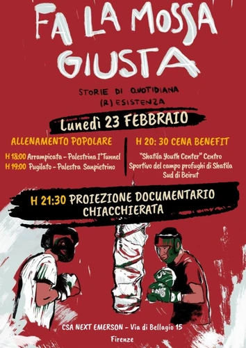 20:30 cena benefit per Centro sportivo del campo profughi di Shatila Sud di Beirut