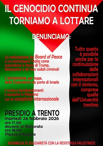 Trento, 24 febbraio: Il genocidio continua, torniamo in strada!