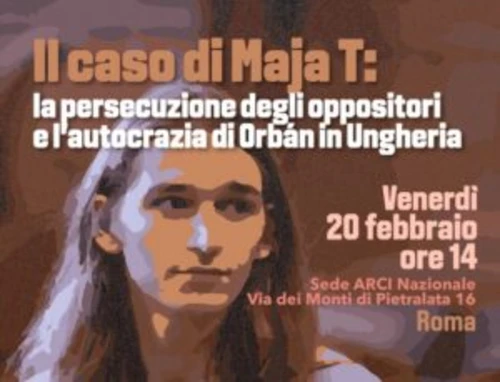Pressenza - Thursday, February 19, 2026Si rafforza a Roma il fronte civile che chiede la liberazione e la revisione del processo nei confronti di Maja T., la giovane attivista condannata dai tribunali ungheresi al termine di un procedimento giudiziario ritenuto da molti osservatori opaco, sbilanciato e privo di elementi probatori solidi. La capitale ospiterà un’iniziativa pubblica dal titolo “Il caso Maja T.: la persecuzione degli oppositori e l’autocrazia di Orbán in Ungheria”, in programma il 20 febbraio 2026 alle ore 14 presso la sede Arci di via dei Monti di Pietralata.