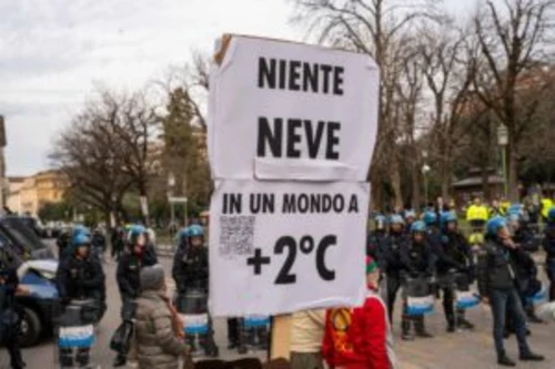 La manifestazione ha rappresentato l’atto conclusivo di una serie di mobilitazioni avvenute nei giorni scorsi in tutto il Nord Italia. Un’iniziativa che ha voluto lanciare un forte atto d’accusa contro un modello di gestione dei grandi eventi ritenuto capace di privatizzare i profitti e socializzare i costi, distruggere territori in nome dello spettacolo, ridurre gli spazi democratici e normalizzare guerra e devastazione ambientale sotto la copertura dello sport.