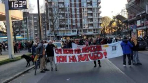 Pressenza - Monday, February 23, 2026Uno striscione retto da cittadini attempati recita: “Chi non ha memoria non ha futuro”.
