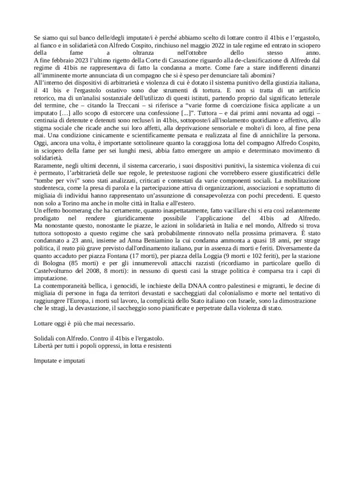 Radio Blackout - Info - Wednesday, February 25, 2026Il 24 febbraio si è tenuto un presidio solidale con gli anarchici accusati di devastazione e saccheggio per il corteo del 4 marzo 2023, quando lo sciopero della fame di Alfredo Cospito era arrivato al quinto mese, mettendone a repentaglio la vita.